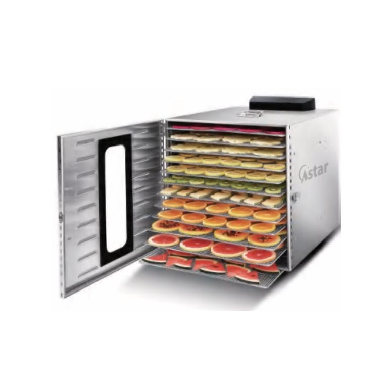 LT-12 Dehydrator Oven ialah mesin pengering makanan suhu rendah yang mengekalkan nutrisi & rasa melalui aliran udara konsisten. Sesuai untuk pengeringan buah, sayur, herba dan pelbagai produk kering. Kawalan suhu yang tepat serta sistem pengudaraan efisien memastikan pengeringan sekata dan berkualiti.